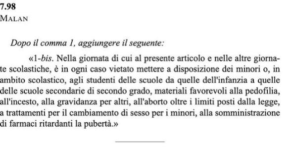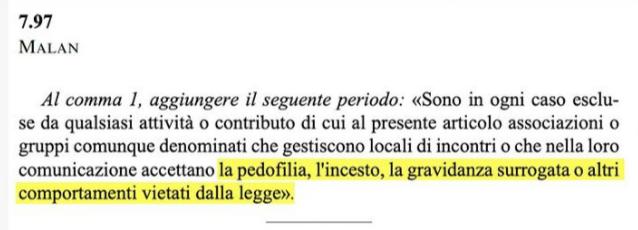Ancora un altro emendamento parla di questioni non presenti nel DDL. Questa volta si tratta di pedofilia, incesto e gravidanza surrogata