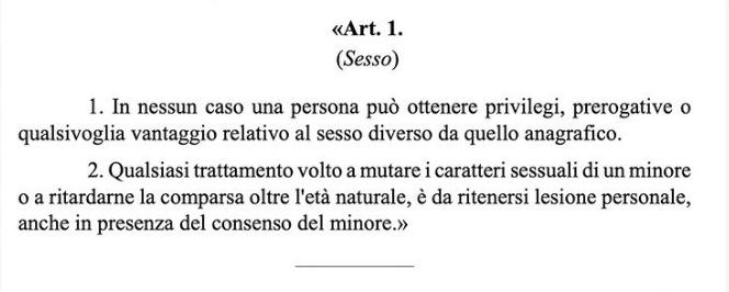 ancora una volta la legge non parla di quello sopracitato, ovvero di cambio di sesso per i minorenni e di vantaggi per le persone trans.