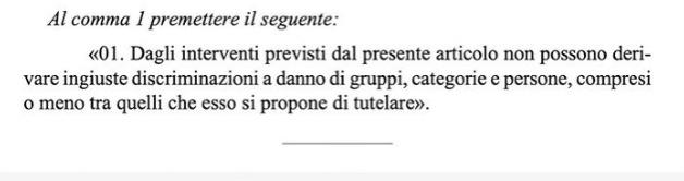 Un altro degli emendamenti chiede di sostituire i primi due articoli con questo: